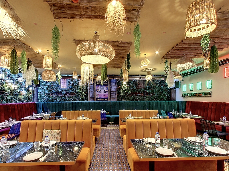 This all weather garden is a lively and vibrant area where people can smoke shisha as well as eat.