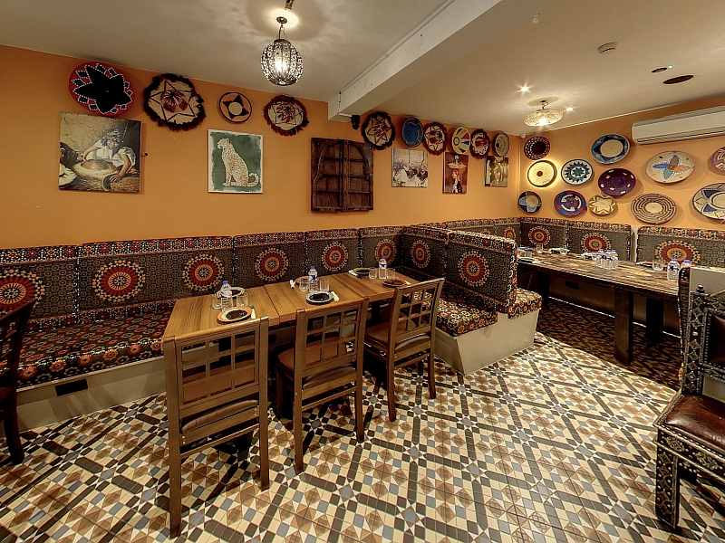 Our upstairs dining room is decorated in the Morrocan style and is better suited to groups.